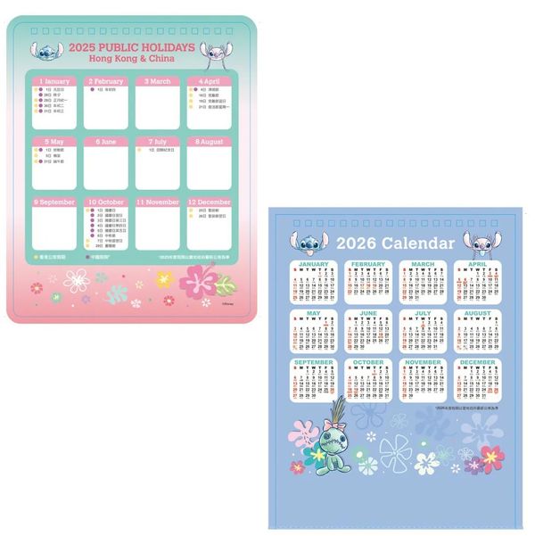 迪士尼 DISNEY 史迪仔 港版 2025 桌上 線圈 座檯 年曆 月曆 日曆 香港假期 史迪奇