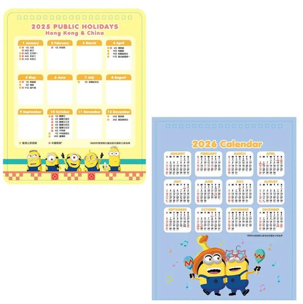 迷你兵團 MINIONS 港版 2025 桌上 線圈 座檯 年曆 月曆 日曆 香港假期 小黃人 壞蛋獎門人 (特價)