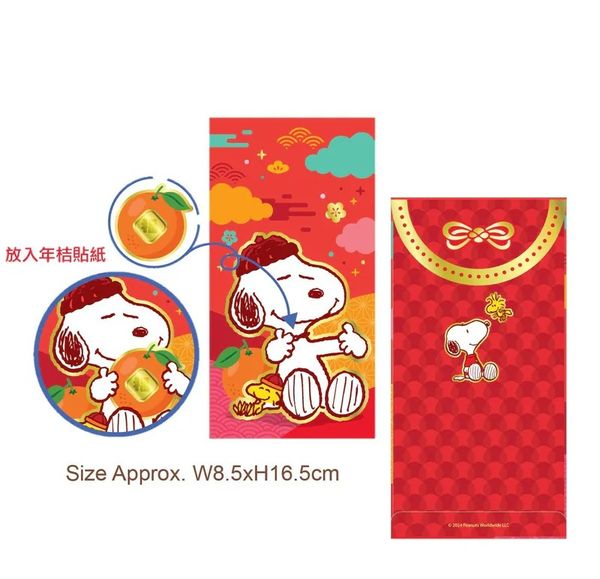 PEANUTS SNOOPY 史努比 港版 2025 蛇年 賀年 長方形 燙金 利是封 6個裝 紅封包 紅包 壓歲錢 新年 8.5X16.5CM 史奴比 史諾比
