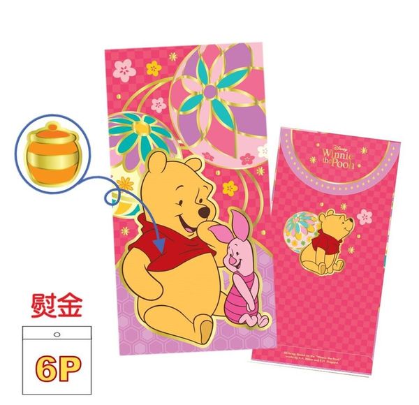 迪士尼 DISNEY WINNIE THE POOH 港版 2025 蛇年 賀年 長方形 燙金 利是封 6個裝 紅封包 紅包 壓歲錢 新年 8.5X16.5CM 小熊維尼