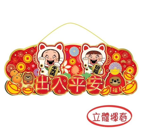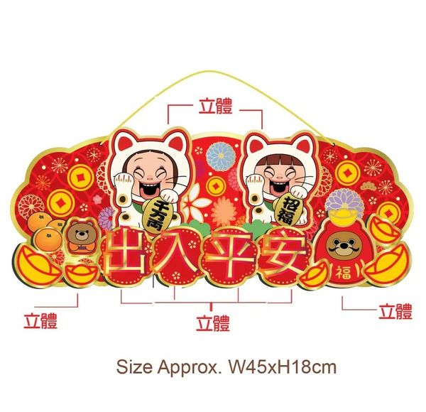 小燦 SHO-CHAN 港版 2025 蛇年 賀年 橫款 立體 揮春 45X18CM 新年 裝飾 (出入平安)
