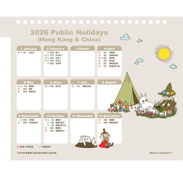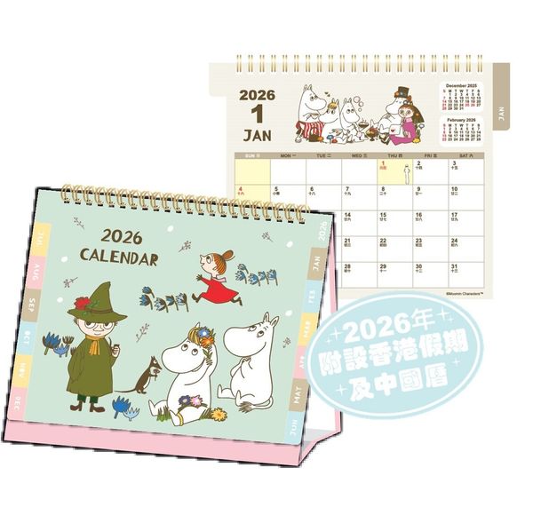 MOOMIN-MOOMIN 姆明家族 港版 2026 桌上 線圈 座檯 年曆 月曆 日曆 香港假期 姆明一族