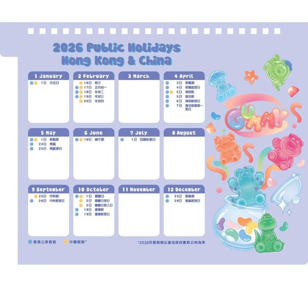 迪士尼-迪士尼 DISNEY 反斗奇兵 TOY STORY 港版 2026 桌上 線圈 座檯 年曆 月曆 日曆 香港假期 PIXAR 玩具總動員