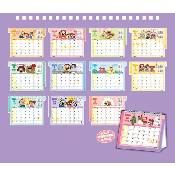 小燦 SHO-CHAN 港版 2026 桌上 線圈 座檯 年曆 月曆 日曆 香港假期