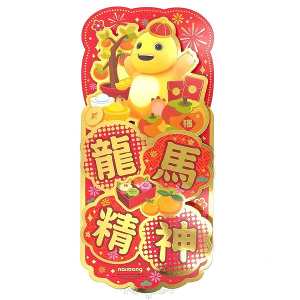 #N_A-NAILOONG 奶龍 港版 2025年 賀年 直款 紅色 立體 賀語 揮春 30.5X14CM 新年 裝飾 蛇年 (龍馬精神)