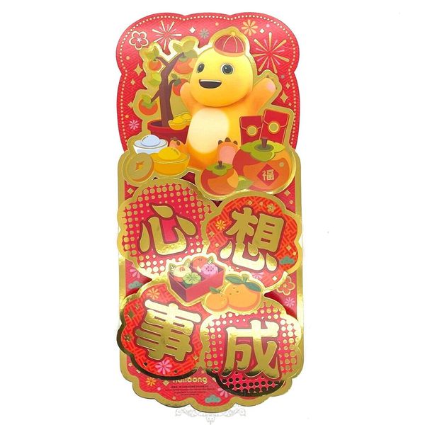 #N_A-NAILOONG 奶龍 港版 2025年 賀年 直款 紅色 立體 賀語 揮春 30.5X14CM 新年 裝飾 蛇年 (心想事成)