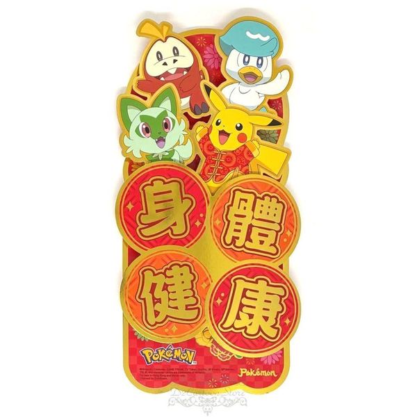 POKÉMON-POKEMON 精靈寶可夢 港版 2026 馬年 賀年 直款 紅色 立體 雙賀語 揮春 新年 裝飾 (身體健康)