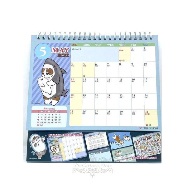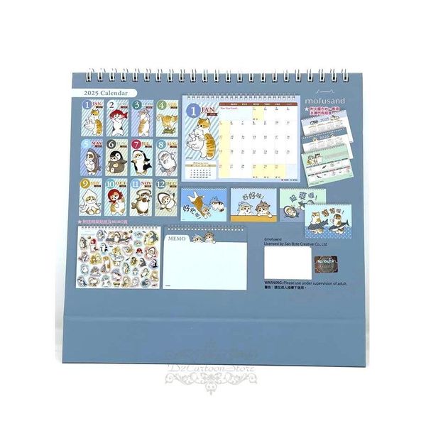 貓福珊迪-MOFUSAND 港版 2025 桌上 線圈 座檯 年曆 月曆 日曆 附貼紙 香港假期 貓福珊迪 (MOF-7802-2)