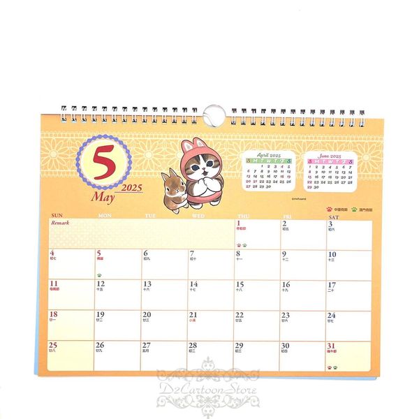 貓福珊迪- MOFUSAND 港版 2025 壁掛 月曆 掛牆 年曆 日曆 掛曆 附貼紙 香港假期 (MOF-7987-2)