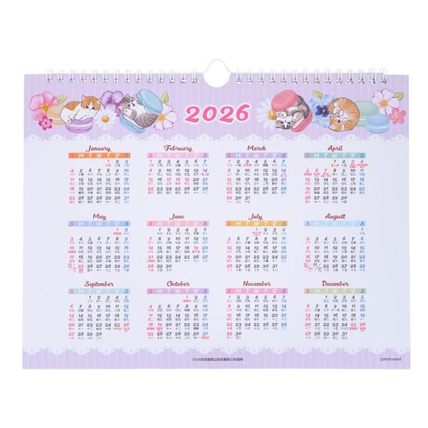 貓福珊迪-MOFUSAND 港版 2026 壁掛 年曆 掛曆 掛牆 月曆 日曆 香港假期