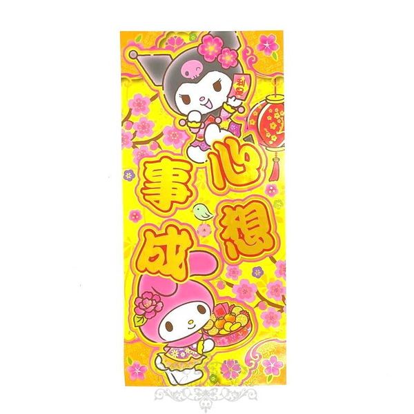 MY MELODY X KUROMI 港版 2021 牛年 賀年 金色 長方形 正規 直款 揮春 14X30.5CM (心想事成) 新年 裝飾 美樂蒂