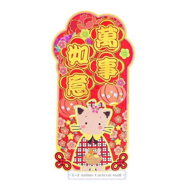 WINKIPINKI 港版 紅色造型 賀年 直款 揮春 2022 新年 新春 直身 裝飾 虎年 14X30.5CM 餅乾貓 (萬事如意)