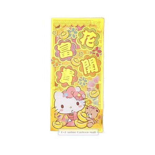 HELLO KITTY 港版 金色造型 賀年 直身 正規 長方形 揮春 2022 新年 裝飾 虎年 30.5X14CM 凱蒂貓 吉蒂貓 KT (花開富貴)