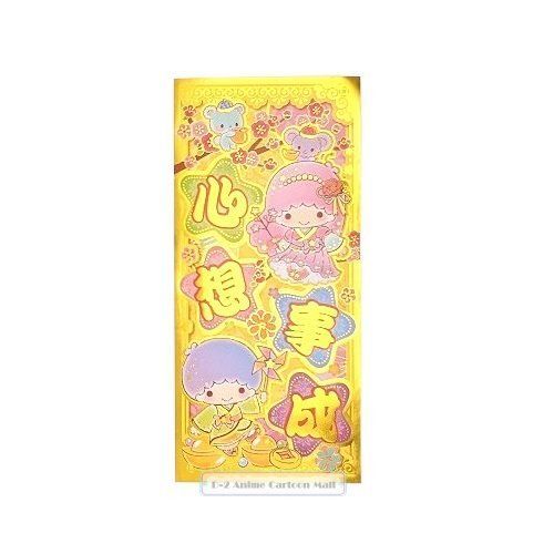 LITTLE TWIN STARS 港版 金色造型 賀年 直身 正規 長方形 揮春 2022 新年 裝飾 虎年 30.5X14CM 雙子星 KIKI LALA 雙星仙子 (心想事成)