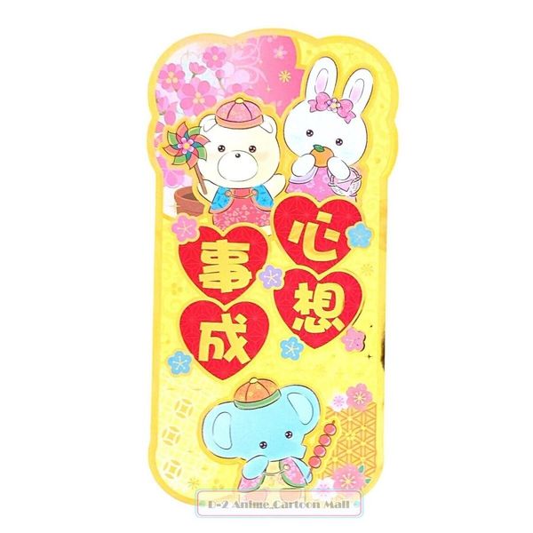 CHEERY CHUMS 港版 金色造型 賀年 直款 揮春 2022 新年 裝飾 虎年 16X30.5CM 恰姆 大象帕姆 小熊牧牧 (心想事成)