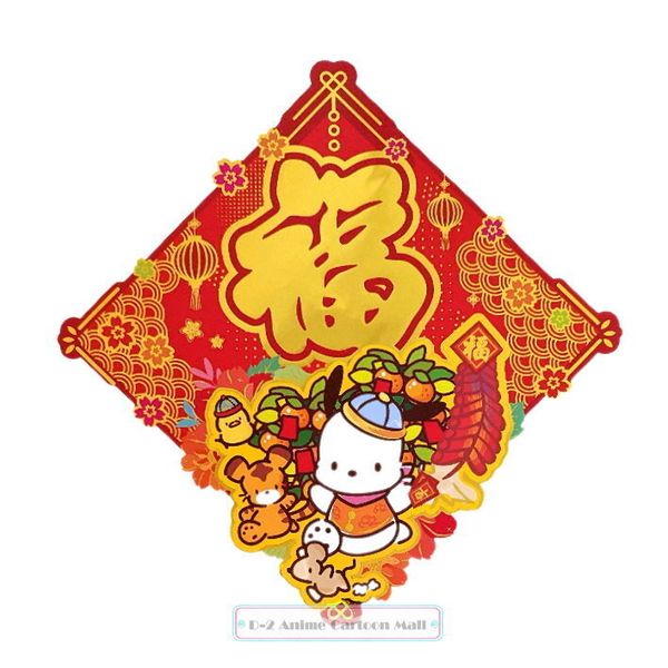 POCHACCO PC狗 港版 紅色造型 賀年 菱形 福字 揮春 2022 新年 裝飾 虎年 26X26CM 帕恰狗
