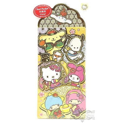 SANRIO CHARACTERS 港版 2023 兔年 賀年 金色造型 特色 利是封 8個裝 紅封包 紅包 壓歲錢 新年 8.7X16.5CM KITTY PC狗 布甸狗 MELODY