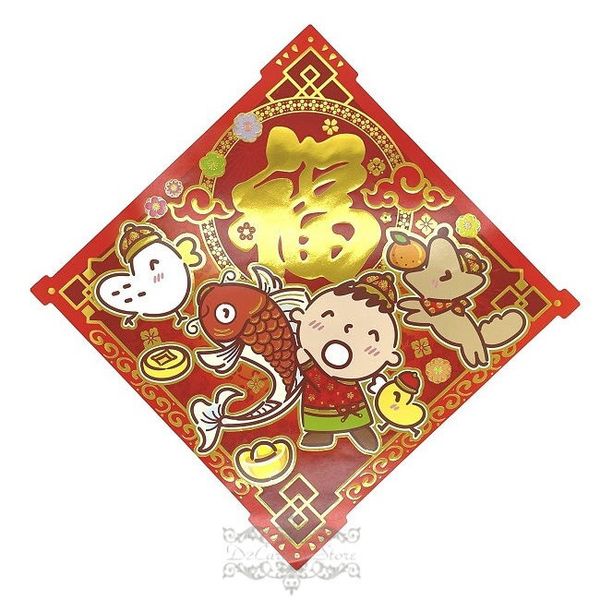 MINNA NO TABO 大口仔 港版 2023 兔年 賀年 方形 福字 揮春 26X26CM 新年 裝飾 大寶