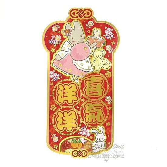 MARRON CREAM 茉莉兔 港版 2023 兔年 賀年 直款 紅色 揮春 15.3X29.5CM 新年 裝飾 兔媽媽 (喜氣洋洋)