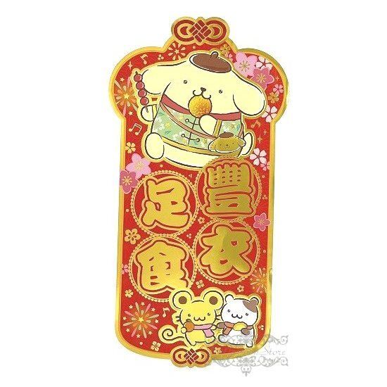 POMPOMPURIN 布甸狗 港版 2023 兔年 賀年 直款 紅色 揮春 15.3X29.5CM 新年 裝飾 布丁狗 (豐衣足食)