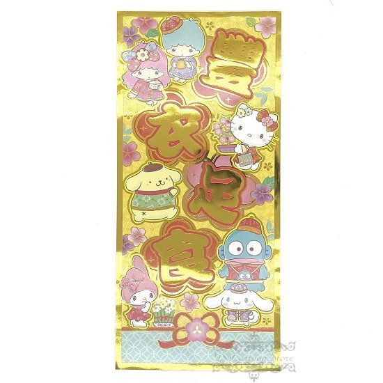 SANRIO CHARACTERS 港版 2023 兔年 賀年 金色 長方形 正規 直款 揮春 14X30.5CM 新年 裝飾 (豐衣足食)