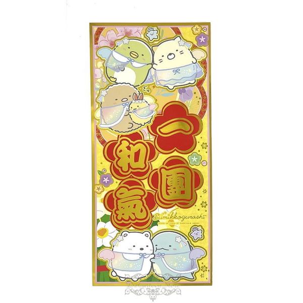 SUMIKKO GURASHI 角落生物 港版 2023 兔年 賀年 金色 長方形 正規 直款 揮春 14X30.5CM 新年 裝飾 角落小夥伴 (一團和氣)