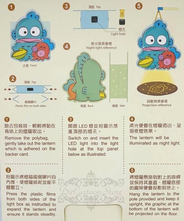 SANRIO-HANGYODON 水怪 港版 中秋 大號 可座檯擺放 夜燈 立體 連燈 附LED燈 通花 投影 手提 燈籠 中秋節 裝飾 2023年款 海怪 人魚漢頓
