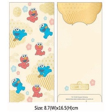 芝麻街 港版 2024 龍年 賀年 燙金 特色 利是封 8個裝 紅封包 紅包 壓歲錢 新年 8.7X16.5CM 餅乾怪獸 艾蒙