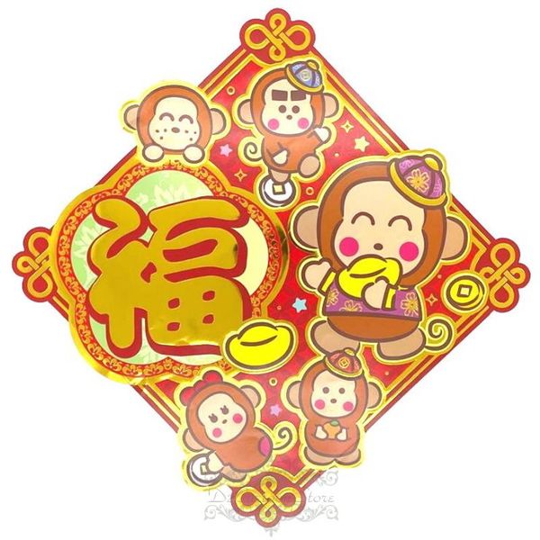 OSARU NO MONKICHI 港版 2024 龍年 紅色造型 賀年 方形 福字 揮春 26X26CM 新年 裝飾 馬騮仔 淘氣猴