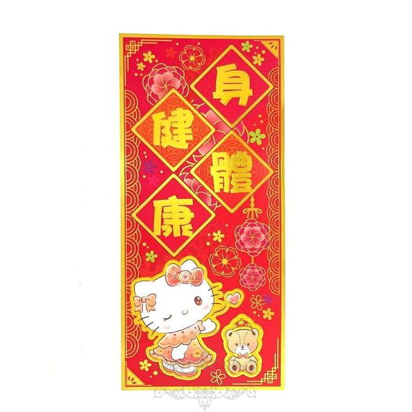 HELLO KITTY 港版 2024 龍年 紅色造型 賀年 紅色 長方形 正規 直款 揮春 14X30.5CM (身體健康) 新年 裝飾 凱蒂貓 KT 吉蒂貓