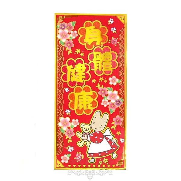 MARRON CREAM 茉莉兔 港版 2024 龍年 紅色造型 賀年 紅色 長方形 正規 直款 揮春 14X30.5CM (身體健康) 新年 裝飾 兔媽媽