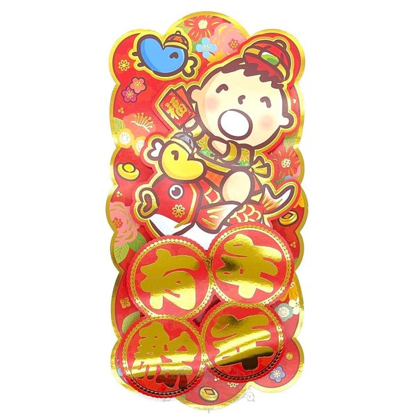 MINNA NO TABO 大口仔 港版 2024 龍年 賀年 直款 紅色 立體 揮春 30.5X15.6CM 新年 裝飾 大寶 (年年有餘)