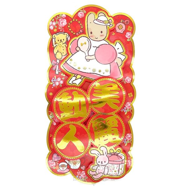 MARRON CREAM 茉莉兔 港版 2024 龍年 賀年 直款 紅色 立體 揮春 30.5X15.6CM 新年 裝飾 兔媽媽 (美麗動人)