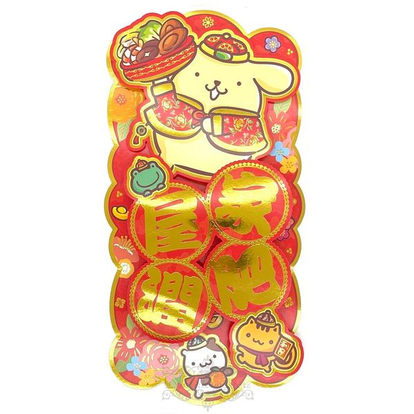 POMPOMPURIN 布甸狗 港版 2024 龍年 賀年 直款 紅色 立體 揮春 30.5X15.6CM 新年 裝飾 布丁狗 (家肥屋潤)
