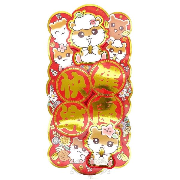 COROCOROKURIRIN CK鼠 港版 2024 龍年 賀年 直款 紅色 立體 揮春 30.5X15.6CM 新年 裝飾 倉鼠 (健康快樂)