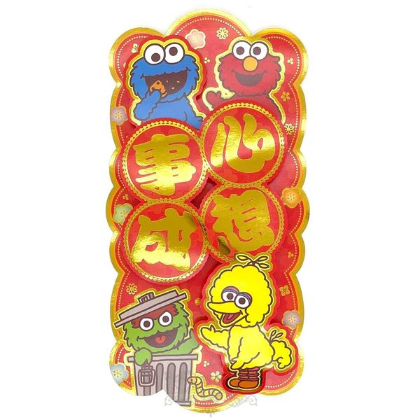 芝麻街 港版 2024 龍年 賀年 直款 紅色 立體 揮春 30.5X15.6CM 新年 裝飾 餅乾怪獸 (心想事成)