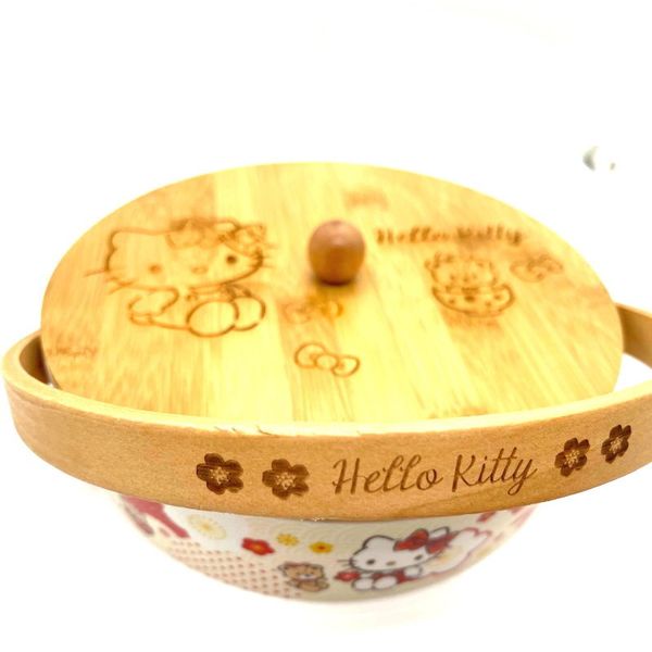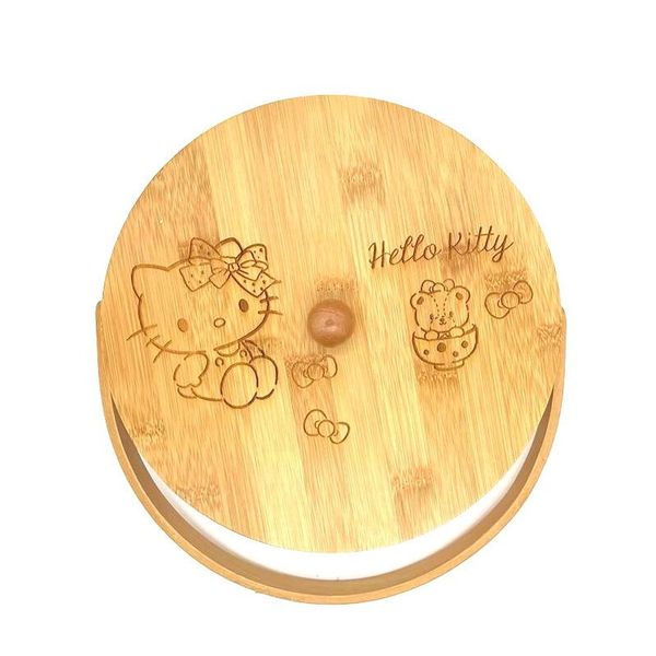 HELLO KITTY 港版 2024 龍年 特色 賀年 圓形 單層 竹製 木蓋 四格 陶瓷 手挽 糖果盒 全盒 新年 裝飾 凱蒂貓 KT 吉蒂貓
