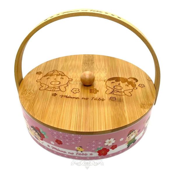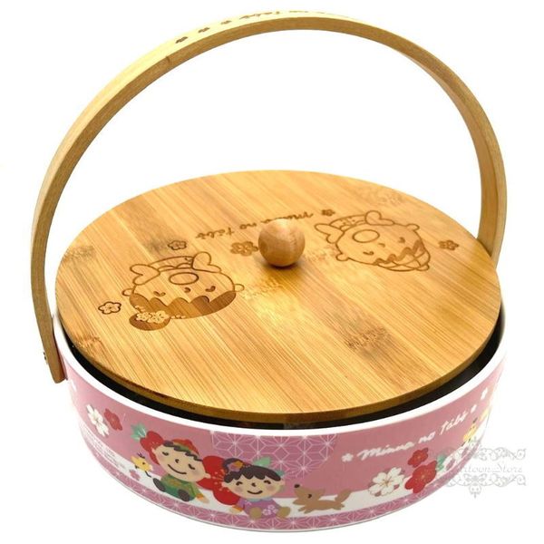 MINNA NO TABO 大口仔 港版 2024 龍年 特色 賀年 圓形 單層 竹製 木蓋 四格 陶瓷 手挽 糖果盒 全盒 新年 裝飾 大寶