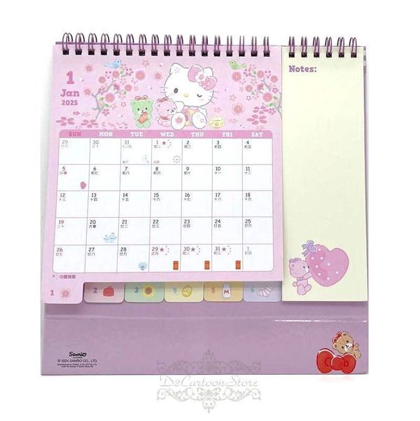 SANRIO-HELLO KITTY 港版 2025 桌上 線圈 座檯 年曆 月曆 日曆 香港假期 凱蒂貓 吉蒂貓 (粉黃)