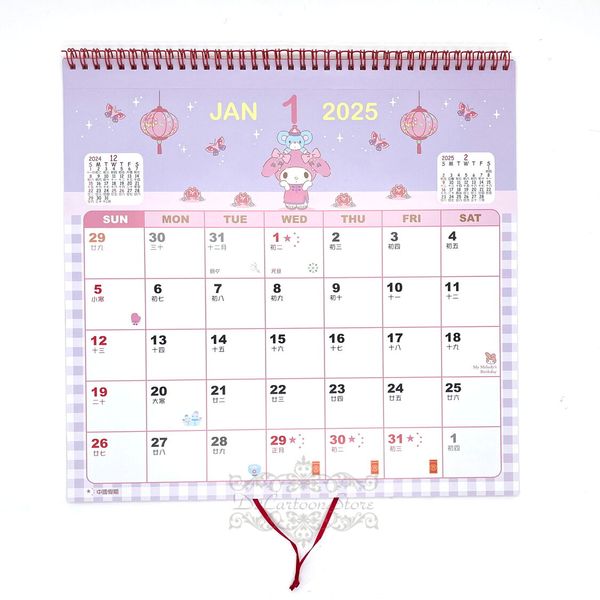 SANRIO-MY MELODY 港版 2025 壁掛 年曆 通花掛曆 掛牆 月曆 日曆 掛曆 香港假期 美樂蒂