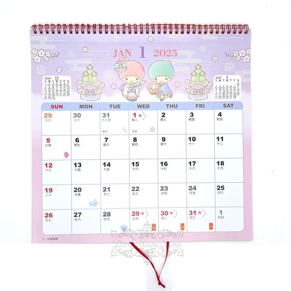 SANRIO-LITTLE TWIN STARS 港版 2025 壁掛 年曆 通花掛曆 掛牆 月曆 日曆 掛曆 香港假期 雙子星 KIKI LALA 雙星仙子