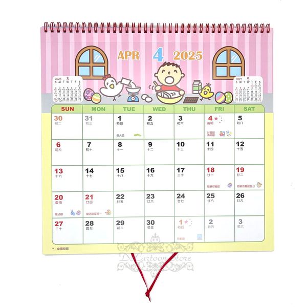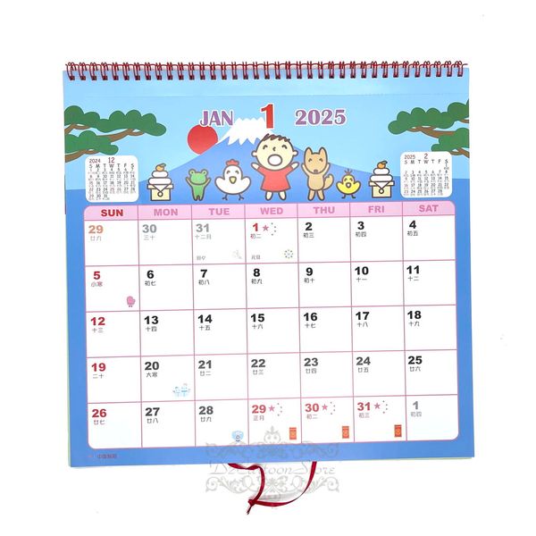 SANRIO-MINNA NO TABO 大口仔 港版 2025 壁掛 年曆 通花掛曆 掛牆 月曆 日曆 掛曆 香港假期 大寶
