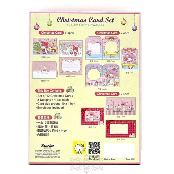 SANRIO-MY MELODY 港版 聖誕卡 聖誕咭 盒裝 一盒十二張 2024 (聖誕系列) 美樂蒂