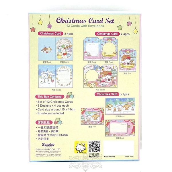 SANRIO-CINNAMOROLL 玉桂狗 港版 聖誕卡 聖誕咭 盒裝 一盒十二張 2024 (聖誕系列) 大耳狗 喜拿狗