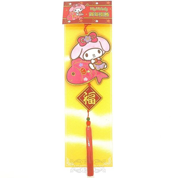 SANRIO-MY MELODY 港版 2025 蛇年 賀年 直款 布藝 刺繡 福字 吊飾 掛飾 掛件 新年 裝飾 美樂蒂)