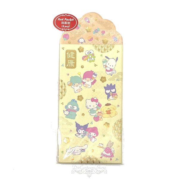 SANRIO-SANRIO CHARACTERS 港版 2025 蛇年 賀年 燙金 特色 利是封 8個裝 紅封包 紅包 壓歲錢 新年 8.7X16.5CM