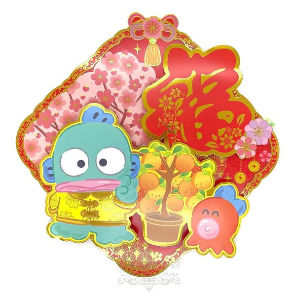 SANRIO-HANGYODON 水怪 港版 2025 蛇年 賀年 花邊 菱形 福字 立體 揮春 28X28CM 新年 裝飾 海怪 人魚漢頓
