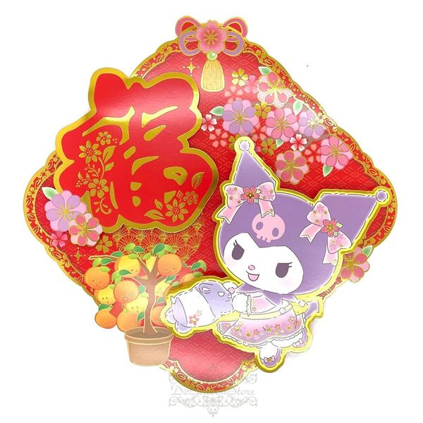 SANRIO-KUROMI 港版 2025 蛇年 賀年 花邊 菱形 福字 立體 揮春 28X28CM 新年 裝飾 酷洛米 庫洛米 可羅米