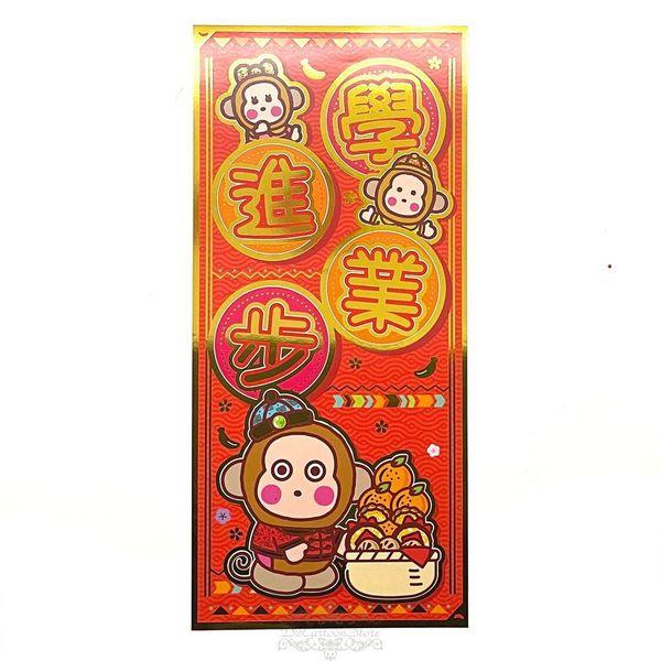 SANRIO-OSARU NO MONKICHI 港版 2025 蛇年 賀年 直款 紅色 揮春 14X30.5CM 新年 裝飾 馬騮仔 淘氣猴 (學業進步)