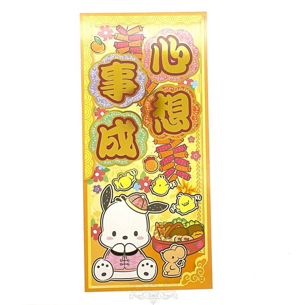 SANRIO-POCHACCO PC狗 港版 2025 蛇年 賀年 直款 金色 揮春 14X30.5CM 新年 裝飾 帕恰狗 (心想事成)